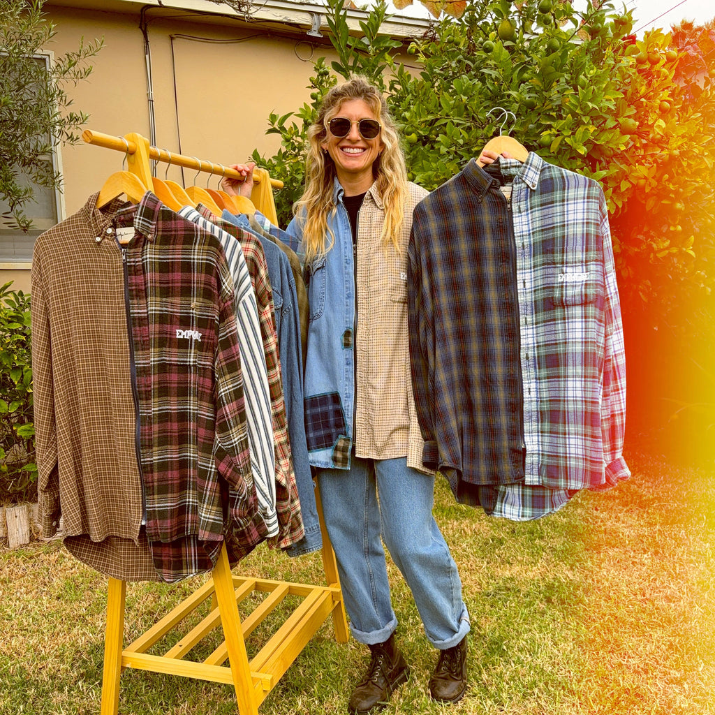 We cut, sew, and repair garments to give them a new life as unique eMpulse styles! Our upcycled designs are released in limited edition collections, which include one of a kind designs. Everything is ethically hand crafted in San Diego, by our team, including the owner of the brand, Em!